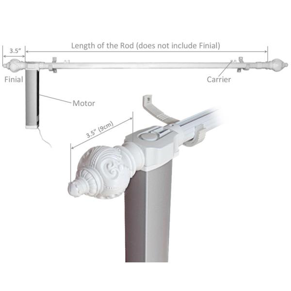 These motorized curtain rods look exactly like regular decorative rods, perfect for people who like beautiful decorative finish and enjoy the convenience of automation at the same time. These rods can be used with Ring-hang panels as well as Grommet panels. If you need a longer length or prefer track-style motorized curtains, please contact us.